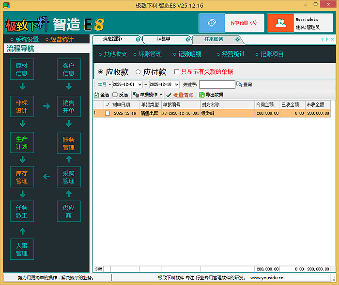 库存管理:将库存合理化就是释放资源,释放固话的资金,释放仓库,从而得到更多的价值。采购、生产、销售完全依托于库存管理。企业只有利用信息化实现合理的库存管理,材能实现更高的利润。在正常运营的前提下,要合理化库存。仓库管理人员通过极致下料生产管理软件实行对仓库的车间领料、半成品、成品的入库、调拨、盘点、预警等管控操作。