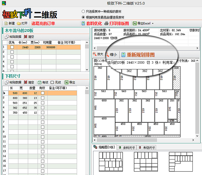 板材切割软件-板材开料软件-板材裁剪软件-板材排版软件-板材切割优化软件-板材算料软件