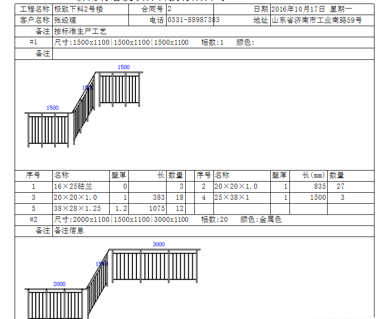 护栏的产品大多都是非标的产品,都需要现场量尺,然后根据款式计算用料。