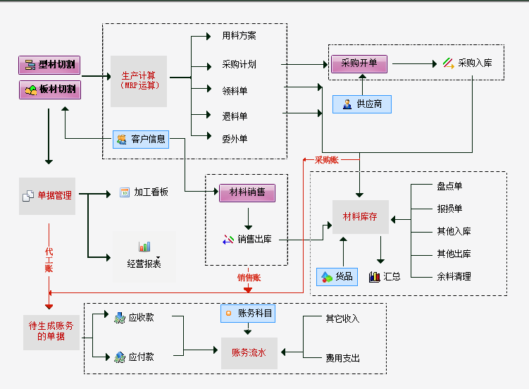 家具厂的加工中心环节是重点,极致下料软件针对家具厂研发的家具管理软件,集产品物料自动拆解,板材切割自动优化,原材库存自动冲减,余料自动入库等功能。