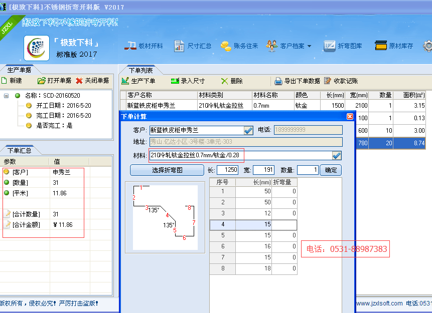 极致下料针对不锈钢行业研发的不锈钢下单软件,软件集成了不锈钢折弯计算,不锈钢开料、物料管理功能于一体。